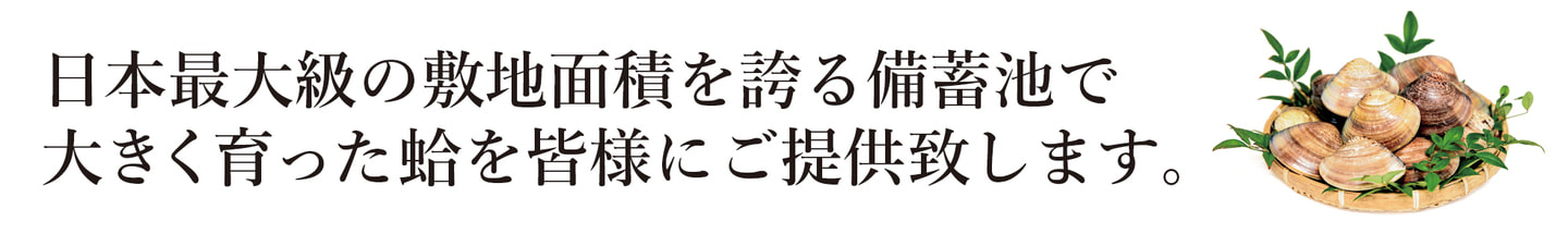 楠町名産「伊勢湾の畜養蛤」の提供。 畜養とは、地下10mから吸い上げた伊勢湾の潤沢な海水を備蓄池に循環させ、そこに蛤を放流し管理する方法で、古くから楠町の名産として知られています。日本最大級の敷地面積を誇る備蓄池で大きく育った蛤を皆様にご提供致します。